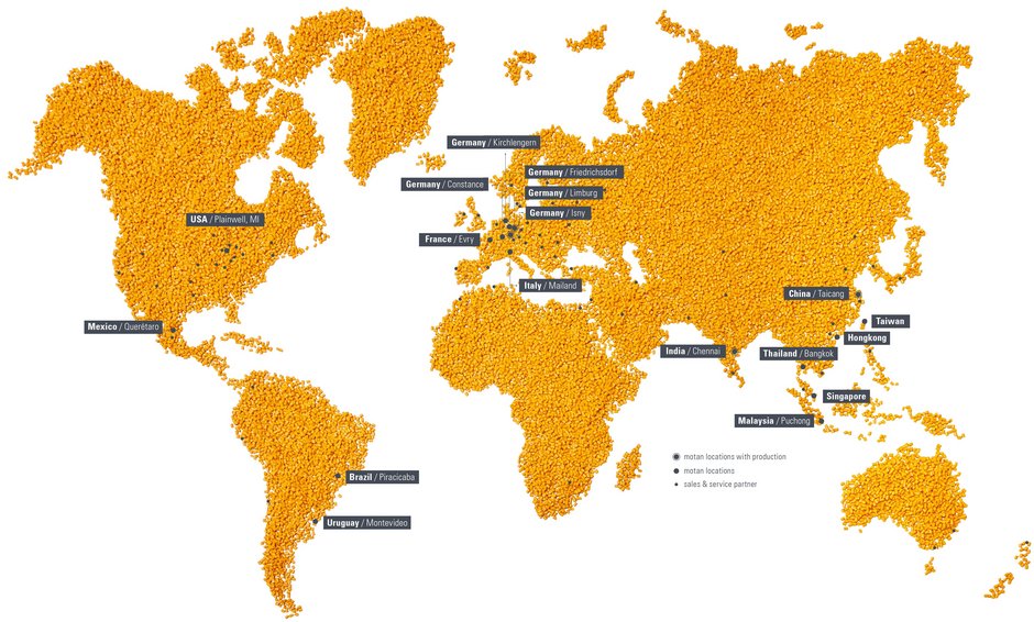 The motan group is represented in more than 80 countries worldwide by a large number of subsidiaries and sales agencies. This is how we live customer closeness. From project planning and energy consulting to customer-specific test environments in our Tech Centre, which we maintain in every sales region, we offer our customers an all-inclusive package in the field of material handling in the plastics industry. We are there where our customers need us.
