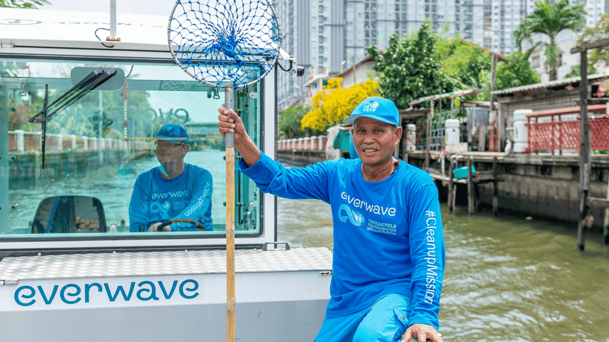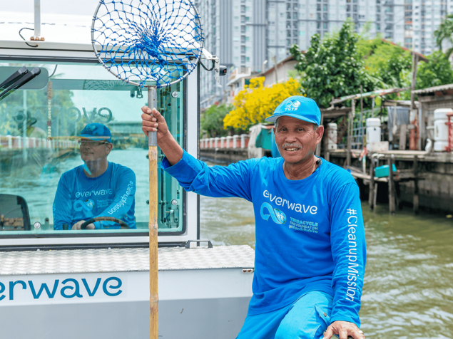 Mit Hilfe von Müllsammelbooten verhindert everwave, dass Abfälle in die Ozeane gelangen. Das Unternehmen verfolgt einen mehrschichtigen Ansatz: Im Mittelpunkt steht die Vermeidung von Plastik und Abfällen, die über Flüsse in die Ozeane gelangen könnten. Künstliche Intelligenz unterstützt die Reinigungsmissionen durch die Identifizierung und Analyse der Abfälle. Das gesammelte Material wird anschließend in umweltfreundlichen Verfahren recycelt.